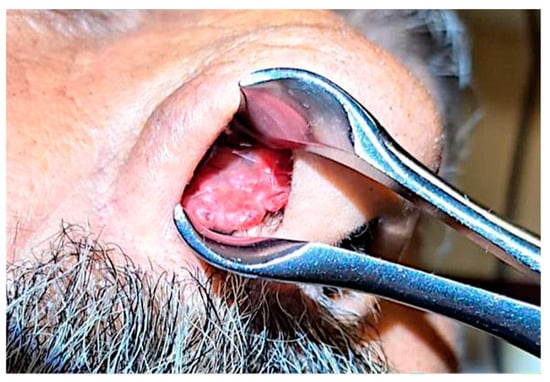 - Carta F, Blancal JP, Verillaud B; et al. Surgical management of inverted papilloma: Approaching a new standard for surgery. Head Neck. 2013, 35, 1415–1420. [Google Scholar] [CrossRef]