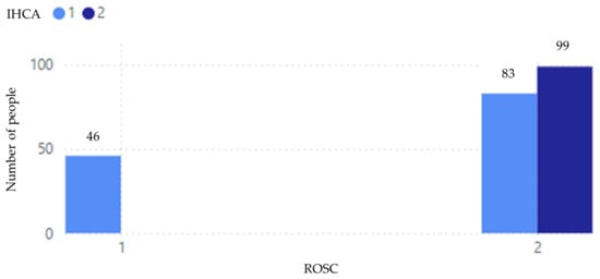 Figure 7, when ROSC did not occur, 46 patients with in-hospital cardiac arrest died, and when ROSC occurred, 83 patients with in-hospital cardiac arrest died and 99 patients survived. This suggests that the occurrence of spontaneous circulation restoration has a significant impact on patient survival, but even if spontaneous circulation is successfully restored, a considerable number of patients may still die.