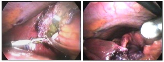 - Ungureanu, F.D.; Cucu, S.; Gadea, A.; Mihelis, M.; Mircea, G.; Dragomir, R.; Moldovan, A.C. Drenajul transomfalic extraperitoneal al cavitatii restante hepatice posthidatice pe cale laparoscopica. Chirurgia 2004, 99, 159–165. [Google Scholar]