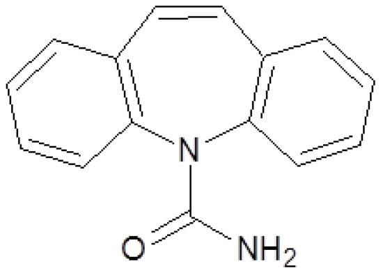 Carbamazepine, an iminostilbene drug substance from a chemical point of view, is effective against grand mal and all forms of epilepsy except petit mal. Its pharmacological action is similar to phenobarbital, phenytoin, lamotrigine, topiramate, and valproic acid, Figure 2, [3]. It was initially approved in the U.S. for use as an anti-seizure agent in 1974. It has been employed since the 1960’s for the treatment of trigeminal neuralgia and is now considered a primary drug for the treatment of partial and tonic-clonic seizures [4].