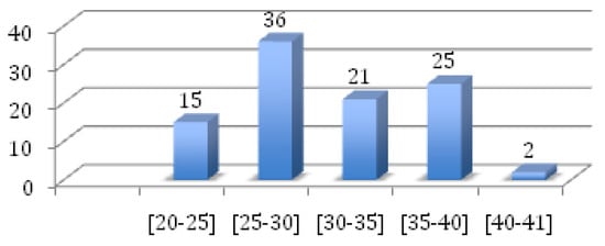 Relationships were established between mortality, morbidity, days in ICU (intensive care unit), blood transfusion units, obstetrical history and the type of placental abnormality. The majority of the patients were aged 25 to 35, 55% of them belonging to 25-35 years old interval (Figure 1).
