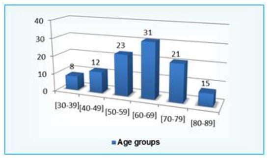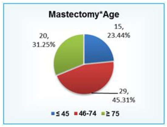 Mean patients age was 61.24, median 62, with the youngest 31 and the oldest 88 years old. Younger age was associated with a less advanced local disease, and younger patients were more likely to benefit from conservative surgery (Figure 1, Figure 2, Figure 3, Figure 4, Figure 5 and Figure 6).