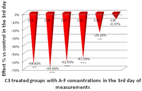 The statistical significance of radicular elongation variations for the groupstreated with different concentrations of compound C3 in the 3rd day of measurements is shown in Table 3.