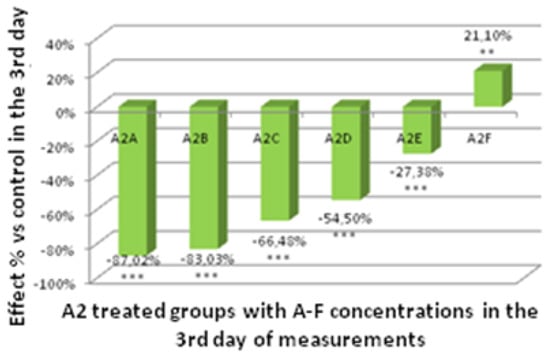 The influence of various concentrations of compound A2 on radicular elongation is illustrated in Figure 7: