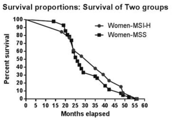 Kaplan-Meier curve for MSI vs. MSS in women.
