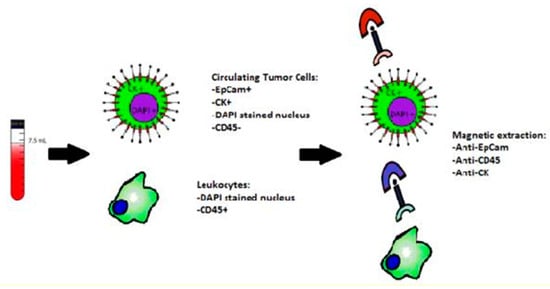 - Denève, E.; Riethdorf, S.; Ramos, J.; Nocca, D.; Coffy, A.; Daurès, J.P.; Maudelonde, T.; Fabre, J.M.; Pantel, K.; Alix-Panabières, C. Capture of viable circulating tumor cells in the liver of colorectal cancer patients. Clin Chem. 2013, 59, 1384–92. [Google Scholar] [CrossRef] [PubMed]