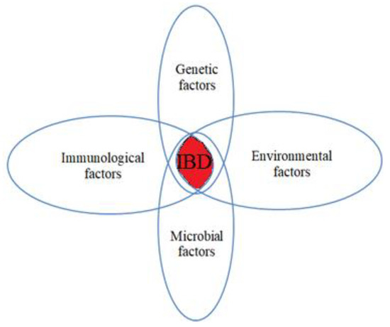 The etiology and pathophysiology of IBD are not completely elucidated. IBD results from the complex interaction of environmental and intestinal microbial factors within a organism that has a genetic susceptibility, which ultimately results in an abnormal immune response partly disconnected from its own regulatory mechanisms (Figure 1) [18].
