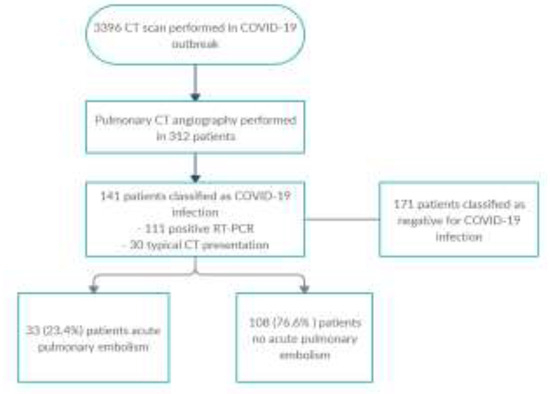 The flow chart of all patients who applied to the emergency department between 13 March and 20 May 2020 in our public hospital, who underwent CT scan, is shown in Figure 1.