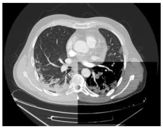 - Shi, H.; Han, X.; Jiang, N.; Cao, Y.; Alwalid, O.; Gu, J.; Fan, Y.; Zheng, C. Radiological findings from 81 patients with COVID-19 pneumonia in Wuhan, China: a descriptive study. Lancet Infect Dis. 2020, 20, 425–434. [Google Scholar] [CrossRef]