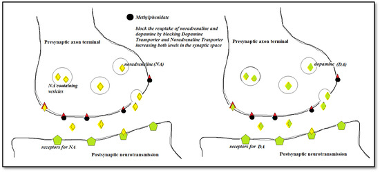 Attention deficit, with or without hyperactivity is a common condition during childhood, affecting 5% of the children [1,2]. This condition poses problems regarding the child’s adaptation to social life and educational activity during kindergarten, school or high-school. The most effective drugs in the treatment of these conditions are psychostimulants such as methylphenidate and non-stimulants: Atomoxetine [3,4], two drugs that have a phenyl-piperidine and phenyl-propane structure (Figure 1). Methylphenidate induces the release of norepinephrine and dopamine at the synaptic level and stimulates postsynaptic receptors (Figure 2), and Atomoxetine is a selective inhibitor of norepinephrine re-uptake (Figure 3). Increased plasma catecholamines will increase cardiac inotropism and heart rate through a beta-1 adrenergic effect and increase blood pressure through an alpha-adrenergic effect. In 2006, the FDA issued a major warning on psychostimulants that they can increase blood pressure and drew attention to other cardiac side effects such as ventricular arrhythmias and sudden cardiac death. For these reasons, the contraindication of psychostimulants has been formulated in children with known arrhythmias or known heart diseases such as congenital heart diseases, acquired myocarditis, dilated or hypertrophic cardiomyopathy. However, serious studies published in the New England Journal of Medicine [5] and the Journal of the American Medical Association [6] have shown that these psychostimulants do not increase blood pressure nor the risk of ventricular arrhythmias. According to these studies, which show the opposite of those formulated by the FDA, clinical guidelines developed by psychiatrists decided to perform a clinical screening of each child before the administration of the psychostimulant. In case of any clinical suspicion of known cardiac disease, the child should be referred to a cardiologist for an ECG and additional cardiac examinations. In a recent paper, David et al. [7] investigated the efficacy of a combined treatment: cognitive-behavioral therapy + Atomoxetine vs. psychotherapy vs. Atomoxetine for children with Attention-Deficit/Hyperactivity Disorder (ADHD). They found that the combined treatment was superior to medication alone on ADHD symptoms.