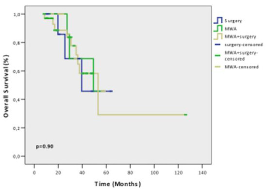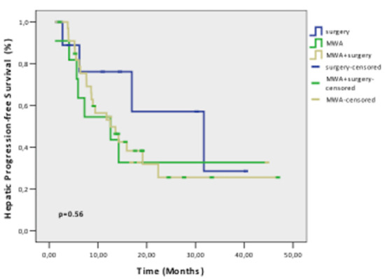 These results are also compatible with our study, showing no significant differences in HPFS and OS between the MWA alone, surgery alone and combined treatment groups (p=0.56 and 0.90, respectively).
