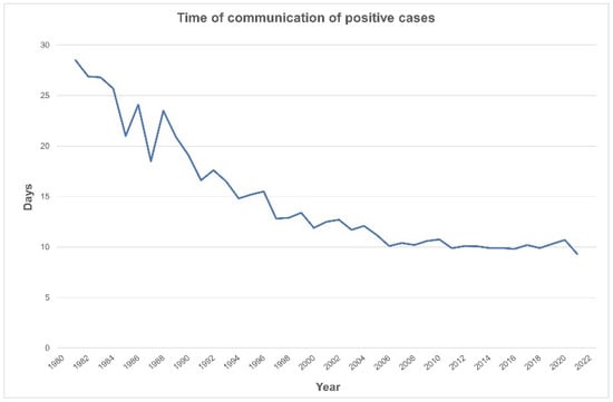 Decreasing time to notification of a positive screen (1981–2021).