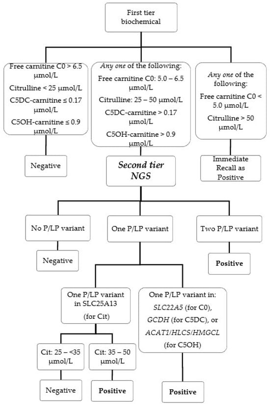 - Stenton, S.L.; Campagna, M.; Philippakis, A.; O’Donnell-Luria, A.; Gelb, M.H. First-tier next-generation sequencing for newborn screening: An important role for biochemical second-tier testing. Genet. Med. Open 2023, 1, 100821. [Google Scholar] [CrossRef]