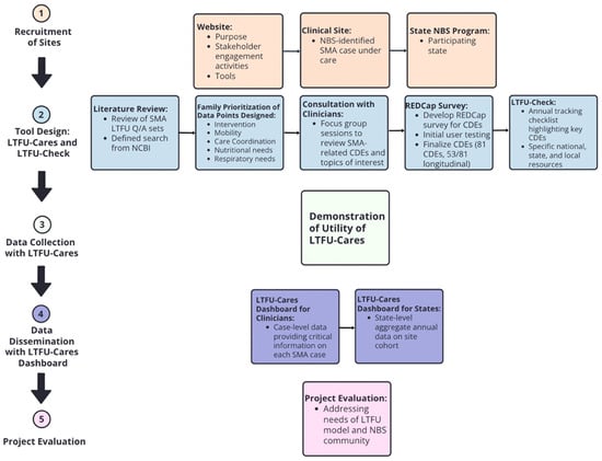 We leveraged the Newborn Screening Translational Research Network (NBSTRN) Steering Committee and Clinical Integration Group (CIG) to identify pediatric neurologists who care for individuals with NBS-identified SMA. We invited the pediatric neurologists to collaborate and guide the development of data points for the LTFU-Cares data collection tool, enter data on at least one SMA case identified through NBS, collaborate with their respective state NBS program, and provide feedback on the LTFU of NBS conditions. These states covered 14.5% of the births in the US [6] and had the potential to detect over 200 cases of SMA per year.