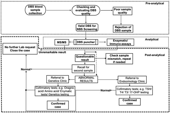 - Therrell, B.L.; Padilla, C.D.; Borrajo, G.J.C.; Khneisser, I.; Schielen, P.C.J.I.; Knight-Madden, J.; Malherbe, H.L.; Kase, M. Current Status of Newborn Bloodspot Screening Worldwide 2024: A Comprehensive Review of Recent Activities (2020–2023). Int. J. Neonatal Screen. 2024, 10, 38. [Google Scholar] [CrossRef] [PubMed]