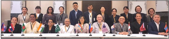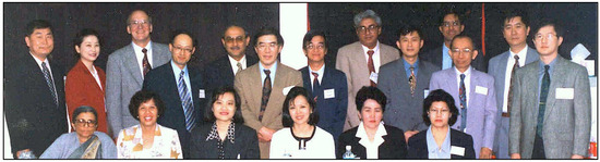 Representatives at first regional meeting of Asian countries, 17–21 May 1999. Seated L to R: Fauzia Moslem (Bangladesh), Nguyen Thi Hoan (Vietnam), Wiyada Charoensiriwatana (Thailand), Carmencita Padilla (the Philippines), Oyun Nanzad (Mongolia), Diet Sadiah Rustama (Indonesia—Bandung). Standing L to R: Unidentified Observer, Hye-Ran Yoon (South Korea), Bradford Therrell (USA), Dong Hwan Lee (South Korea), Reyad Kamel (IAEA), Soo Lin Ch’ng (IAEA), San Aye (Myanmar), Shahid Kamal (Pakistan), Shi Lixin (China), Amar Singh (Malaysia), Frans Sardi Satyawirawan (Indonesia—Jakarta), Gao Shuo (China), Unidentified Observer.