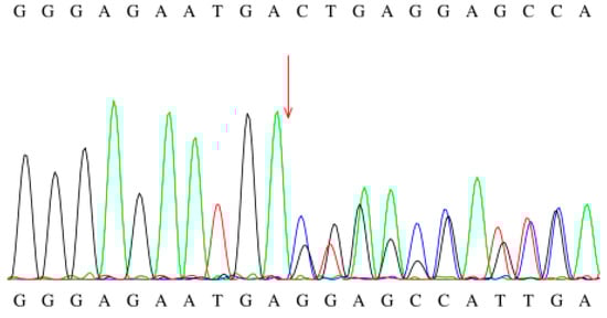 Sanger sequencing chromatogram of the c.449-452del mutation.