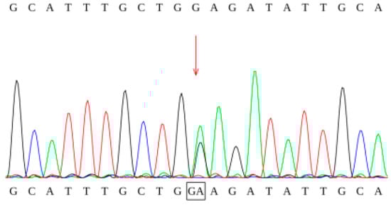 Sanger sequencing chromatogram of the c.1085G>A mutation.