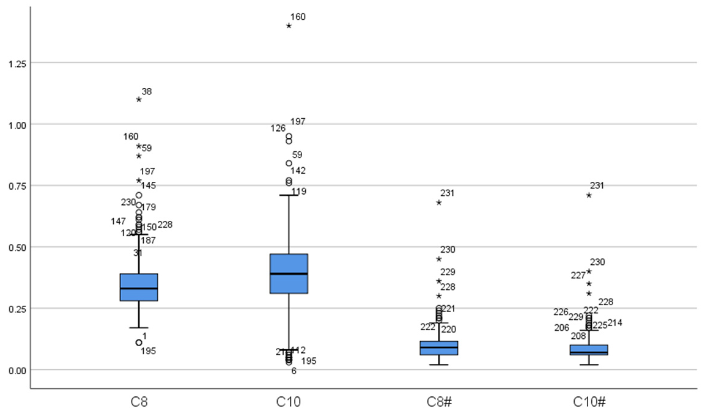 C0 (μmol/L) | C8 (μmol/L) | C8/C10 | C0 (μmol/L) | C8 (μmol/L) | C8/C10 | ||||