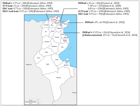 In Tunisia, the three major common sub-types of hemoglobinopathies are α-thalassemia, β-thalassemia, and sickle cell disease (SCD) [].