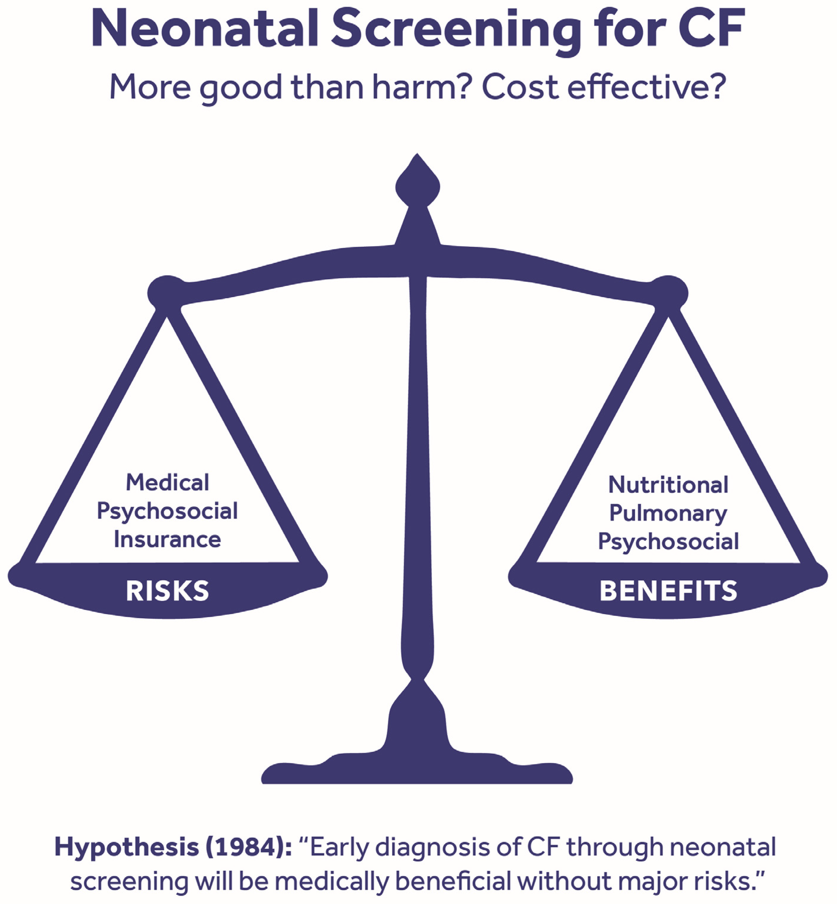 - The net balance of benefits and risks is contingent on how newborn screening for CF is implemented.