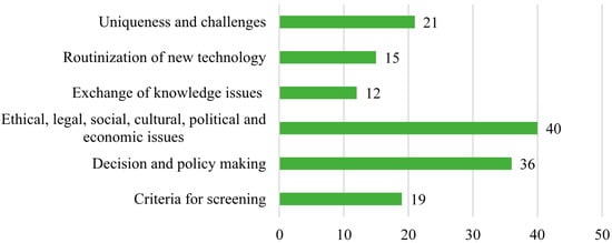The detailed coding guide, including the number of quotations creating each code, is available in Supplementary Materials, which appears at the end of the manuscript. The following sections refer to the two major code families (consisting of 53% of the total number of codes): 1. Decision- and policy-making issues and 2. Ethical, legal, social, cultural, political, and economic issues.