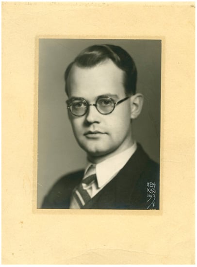 Gunnar Jungner, at 24 years of age. Photograph taken at the engagement to Greta Nelson in 1938.