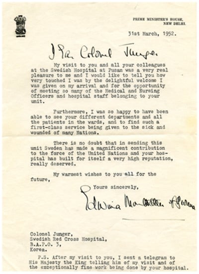 His military commitment also led to a year as Commanding Officer at the Swedish Red Cross Field Hospital in Pusan, Korea in 1952, during the Korean War. His work there was very much appreciated as exemplified by the documents below (Figure 3 and Figure 4):