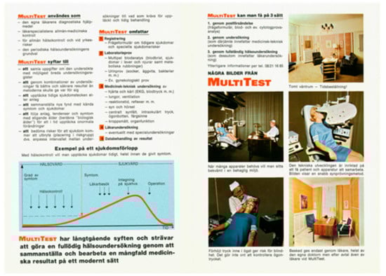 Gunnar and Ingmar Jungner created an outpatient ward where people could come for health controls: the “MultiTest Centre” (Figure 9 and Figure 10). The aim was to diagnose treatable disorders at an early stage. The individual filled in a form with information of inherited disorders, earlier diseases, and other facts of interest. This was followed by clinical investigations of eyes and sight, hearing, blood pressure, and an ECG was performed. Urine was investigated for sugar, protein, and bacteria, and some 40 clinical chemistry parameters were analysed in a plasma sample. Finally, a clinical investigation was performed by a physician. All data was saved in a database.