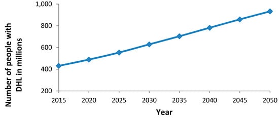 The number of people in the world who suffer from a disabling hearing loss has increased from 42 million in 1985 to 360 million in 2010 [4]. Seven and a half million of these people were younger than 5 years of age. Recent estimates show a further increase to 466 million people with disabling hearing loss as of the current time [5]. These people make up over 6% of the world’s population [1]. Thirty-four million (7.3%) of the 466 million people with disabling hearing loss are children, with the highest numbers in South Asia, Asia Pacific and Sub-Saharan Africa. These absolute numbers have increased more than estimated and are expected to continue to increase during the next years [1,6,7], mainly due to the growth and the aging of the world´s population. It is predicted that without counter-measures, as many as 630 million people could suffer from disabling hearing loss by 2030 and nearly 900 million by 2050 [5,8] (Figure 1).