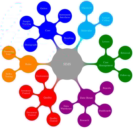 In their book, McCudden and Henderson noted, “the present and future of health care relies on electronic information” []. The complexities that are required to capture complex demographics, manage high sample volumes in a timely manner and integrate multiple test platforms have strained many programs’ abilities to move forward with these innovations. Newborn screening programs require a SIMS that is capable managing all of the data coming into and out of the program. There must also be facilities to customize the SIMS to the needs of the program. The functions of an ideal SIMS for newborn screening programs are outlined in Figure 2.