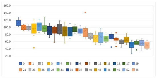 | 1 week | 10 | 108.4 | 87.25–129.63 | 106.9 | 89.88–123.90 | 0.572 |