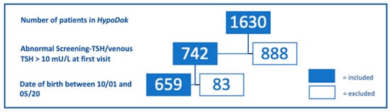 Eligible patients of the HypoDok registry, according to the inclusion criteria of this study (abnormal screening TSH/venous TSH > 10 mU/L).