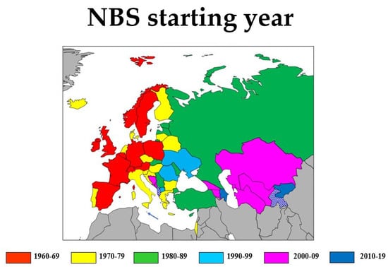 - International Society for Neonatal Screening—Region Europe. Available online: https://www.isns-neoscreening.org/isns-regions/region-europe/ (accessed on 18 November 2020).