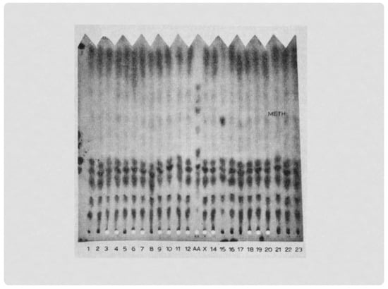 The increased methionine seen in the NBS specimen of the first baby with HCU identified in Massachusetts (#15). The screening method was one-way paper chromatography, the method used before adding the Guthrie bacterial assay for methionine in the Massachusetts program.