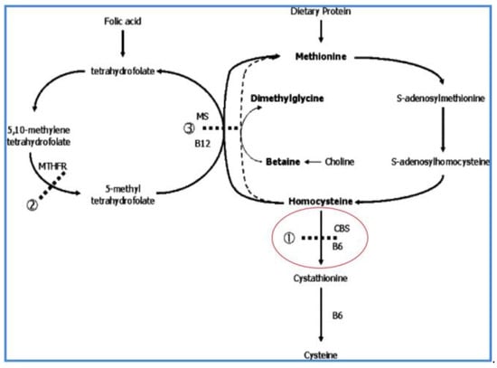 - Sacharow, S.J.; Picker, J.D.; Levy, H.L. Homocystinuria caused by cystathionine beta-synthase deficiency. In Gene Reviews [Internet]; Adam, M.P., Ardinger, H.H., Pagon, R.A., Wallace, S.E., Eds.; University of Washington: Seattle, WA, USA, 2004; pp. 1963–2021, Updated 18 May 2017. [Google Scholar]