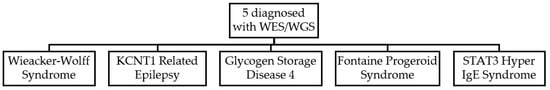 - Srivastava, S.; Cohen, J.S.; Vernon, H.; Barañano, K.; McClellan, R.; Jamal, L.; Naidu, S.; Fatemi, A. Clinical whole exome sequencing in child neurology practice. Ann. Neurol. 2014, 76, 473–483. [Google Scholar] [CrossRef] [PubMed]