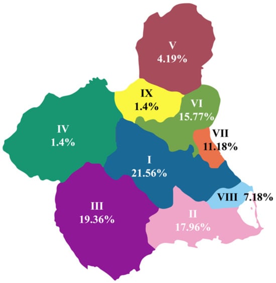 - Población Según Zonas Básicas de Salud, Municipio y Área de Salud. Portal Estadístico de la Región de Murcia. 2023. Available online: https://econet.carm.es/inicio//crem/sicrem/PU_padron/p20/sec29.html#:~:text=CREM%20%20PADR%C3%93N%20MUNICIPAL%20DE%20HABITANTES%20%2026.,salud.%202020%20Fecha%20de%20actualizaci%C3%B3n%3A%2004%2F02%2F2021.%20-%20CREM (accessed on 3 June 2023).