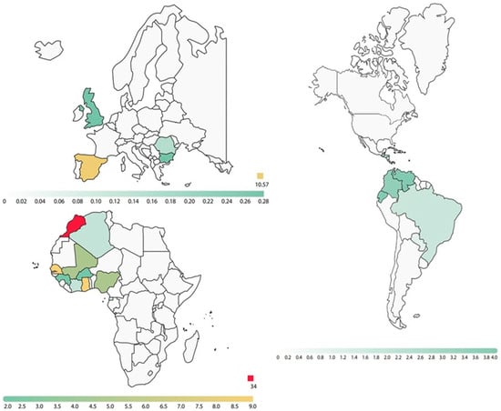 - Núñez-Jurado, D.; Payán-Pernía, S.; Álvarez-Ríos, A.I.; Jiménez-Jambrina, M.; Pérez-De-Soto, I.C.; Palma-Vallellano, A.J.; Zapata-Bautista, R.; Hernández-Castellet, J.C.; Garrastazul-Sánchez, M.P.; Arqueros-Martínez, V.; et al. Neonatal Screening for Sickle Cell Disease in Western Andalusia: Results and Lessons Learnt after 3 Years of Implementation. Am. J. Perinatol. 2022. online ahead of print. [Google Scholar]