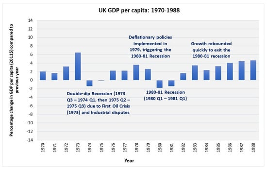 - Paker, Meredith M. 2020. Jobless Recovery After the 1980–1981 UK Recession, Oxford Economic and Social History Working Papers No. 182. University of Oxford, Department of Economics. Available online: https://ideas.repec.org/p/oxf/esohwp/_182.html (accessed on 22 July 2021).