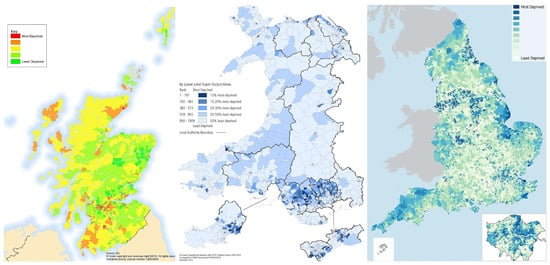 | 1 | Sources: Scotland: The Scottish Government (2019) (Scottish Index of Multiple Deprivation 2012), Wales: Welsh Government (Welsh Index of Multiple Deprivation 2019), England: Ministry of Housing, Communities & Local Government (English Indices of Multiple Deprivation 2019), licensed under Open Government Licence v3.0. Note: Northern Ireland not featured due to copyright restrictions. |