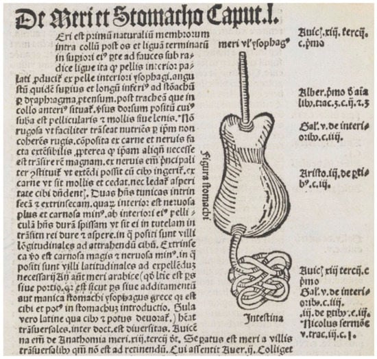 What at first glance sounds like a typical humanist project turns out, on closer look, to be a compilation of a wide variety of scholastic ideas. It is true that Hundt, especially at the beginning, shows off his knowledge of classical authors such as Ovid or Horace and also important humanist authors such as Marsilio Ficino and Giovanni Pico della Mirandola. Nevertheless, not only is the style typically scholastic but also the majority of the sources Hundt consults for the Anthropologium. He makes use of many standard medical works of the Middle Ages and relies, for example, on Petrus de Abano, Avicenna and Averroes (Santing 2020, pp. 471–75). The main ideas of how the dignity of man is shown in his body look like humanist ideas, but actually come from Albertus Magnus. Hundt’s interest in depicting the human being in a certain way may well have been influenced by a humanist mindset. However, the arguments and ideas he consults are predominantly medieval-scholastic. Hundt does not hide these roots, but rather highlights them. This is also evident, for example, when he describes the properties and functioning of the body in the words of Albertus Magnus.