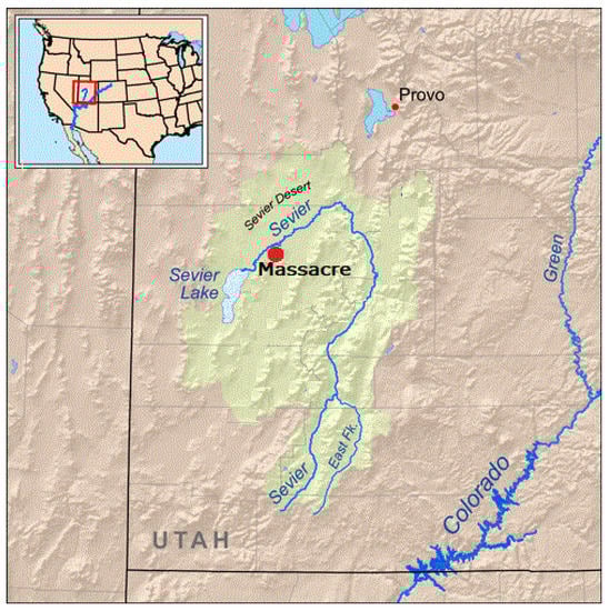 - Haymond, Jay M. 1994. Sevier Lake. In Utah History Encyclopedia. Salt Lake City: Utah Educational Network. Available online: https://www.uen.org/utah_history_encyclopedia/s/SEVIER_LAKE.shtml (accessed on 1 January 2022).