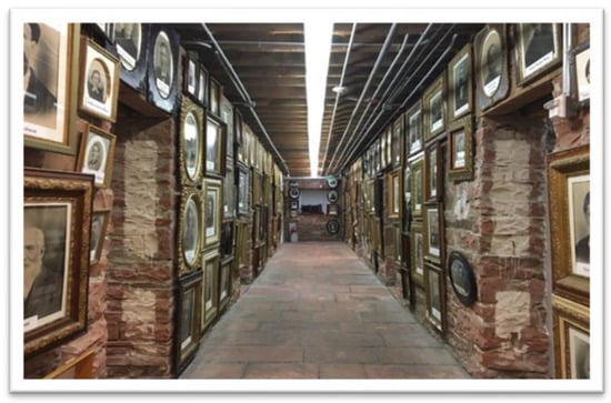 Something cold waits down the hall in the building’s sandstone basement. The jail has no door. The leg irons bolt to flagstones. Rectangles and ovals of golden rococo are triple-stacked ceiling-to-floor with gaunt rheumatic faces (Figure 12). The patriarchs. The scowling matrons. Cheekbones tinted with a pinkish pigment like cadavers in open caskets. “We check for ghosts every day”, says Ranger Carl, curator, a twinkle breaking his deadpan. Outside, in a hoodie and six inches of snow, is a stout young man with a camcorder and three kinds of poltergeist scanners. Ben Stephenson of Fillmore monitors swaying drapes in an upstairs window. The Other is out there, he is sure.75