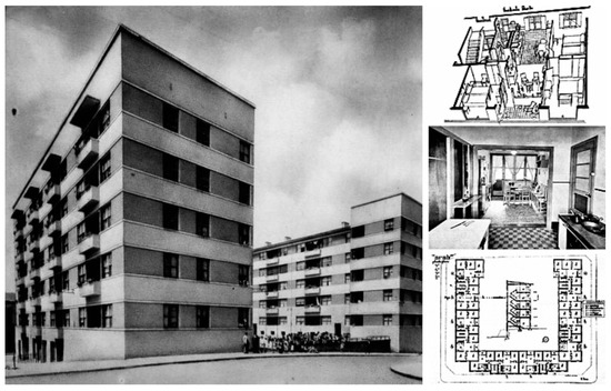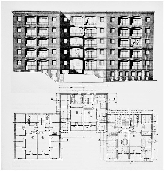 Among the modest initiatives of Spanish modernity were proposals by architects of the Generation of 1925 in Madrid (a group named by Carlos Flores including García Mercadal, Rafael Bergamín, Luis Blanco, Casto Fernández Shaw, Carlos Arniches, and Luis Lacasa, among others) (Diéguez Patao 1997) and the Catalan group of GATEPAC (so-called GATCPAC, with representatives such as Josep Lluis Sert, Josep Torres Clavé, Joan Baptista Subirana, Sixte Illescas, and Germán Rodríguez Arias) (Solà-Morales 1980). Examples include Rafael Bergamín’s El Viso Colony in 1931 (exploring the possibilities of the ambiguous 1925 Economic Housing Law to build homes beyond the middle class), Secundino Zuazo’s Casa de las Flores (funded with help from the National Institute of Provision), and Sert, Torres Clavé, and Subirana’s Casa Bloc in 1932–1936 (directly commissioned by the Government of Catalonia), which reflected hesitant initiatives of Spanish architectural rationalism (Bohigas 1998) (Figure 4).