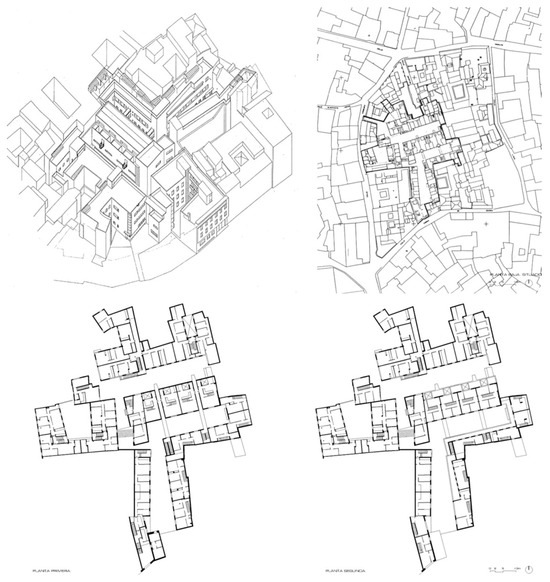 The housing proposals of the last few decades of the 20th century traversed the predicted residential landscapes: fragments of urban extension developed through partial masterplans articulated with the existing city and interventions of various scales aimed at the recovery of consolidated cores. Significant examples of large-scale interventions in stitching new peripheries include the Ramón y Cajal social housing in Seville by Vázquez Consuegra, the M30 housing by Sáenz de Oiza in Madrid, and the social housing by Manuel de las Casas in Alcobendas. Examples of rehabilitation and acupuncture interventions in historic centers include the housing on Calle del Carme by Josep Llinàs in Barcelona, the relocation housing by Eduardo de Miguel in Valencia, the Corrales de Vírgenes-Trompero housing by Carrascal and Fernández de la Puente in Seville (Figure 11), and the housing in the old town of Alicante by Dolores Alonso. In this order of interventions, the strategic character of some urban renewal actions must also be highlighted, often articulated through special interior reform plans. Such is the case of the PERI del Jonquet in Palma de Mallorca, attentive to the urban morphology of the historic city for structuring urban voids and the integrated restructuring of this city area (Roca and Fortuny 1985) (Figure 12), which also resulted in notable residential buildings like the housing in Puig de Sant Pere and Es Jonquet by the team of Guillem Oliver and Neus G. Iñesta.