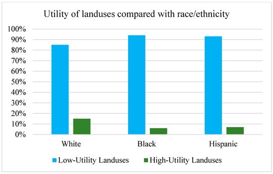 Land use distribution for high-utility and low-utility with race or ethnicity distribution in Harris County, Texas.