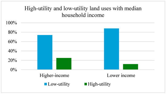 Land use distribution for high-utility and low-utility land uses based on household income in Harris County, Texas.