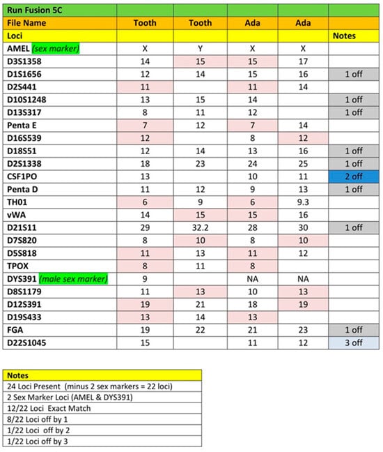 - Watherston, Jeremy, and Jodie Ward. 2023. Chapter 8—Autosomal short tandem repeat (STR) profiling of human skeletal remains. In Forensic Genetic Approaches for Identification of Human Skeletal Remains. Challenges, Best Practices, and Emerging Technologies. Cambridge, MA: Academic Press, pp. 167–97. [Google Scholar] [CrossRef]