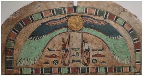 The winged solar disk with two red uraei in a wooden stele. Turin, Museo Egizio, item no. C. 1568 (gift from Cairo Museum; photo provided by the author).